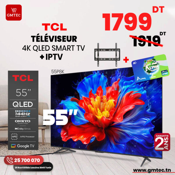 TV QLED HDR TCL 55″ SMART GOOGLE TV UHD 4K 55P8K