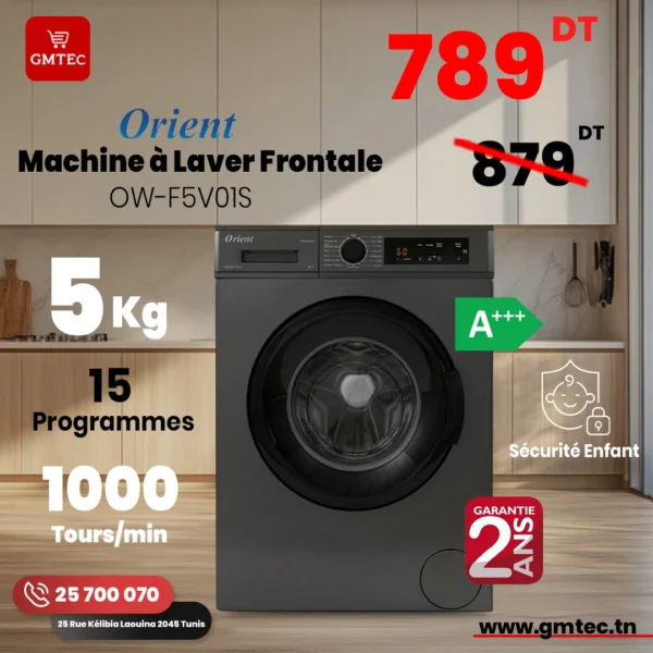 MACHINE A LAVER FRONTALE ORIENT 5KG 1000 TRS DARK INOX