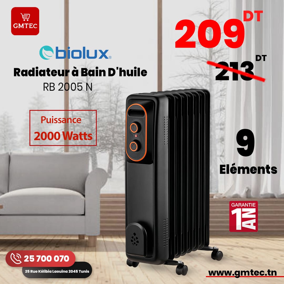Offrez à votre intérieur un confort thermique optimal avec le Radiateur à Bain d’Huile Biolux RB 2005N. Conçu pour chauffer efficacement votre espace, ce radiateur est la solution idéale pour affronter les périodes de froid tout en profitant d’une chaleur douce et durable.