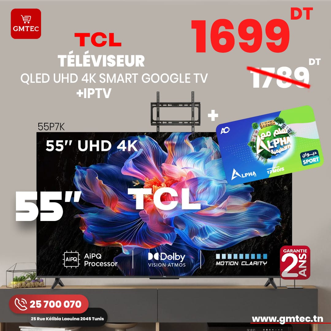 TV QLED 55″ TCL SMART GOOGLE TV ULTRA HD 55P7K