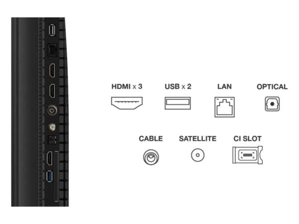 - TV Connectée : Navigateur Internet • Wi-Fi • Bluetooth • DLNA v.1.5 • AirPlay 2 • TCL Home