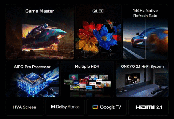 *L’image présentée est basée sur le modèle 85″. L’apparence réelle des modèles 55″, 65″, 75″ et 98″ peut légèrement différer. Veuillez vous référer au produit réel.