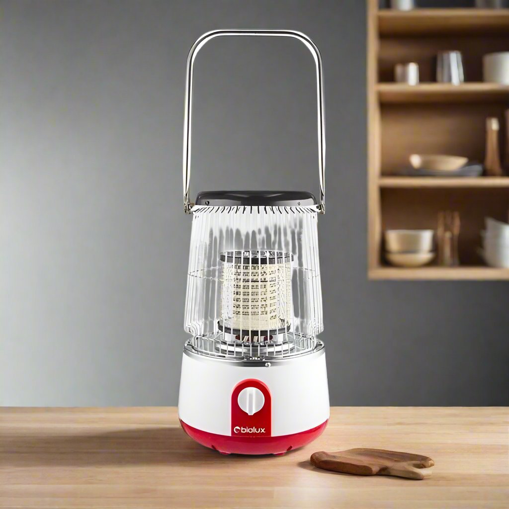 Chauffage Électrique BIOLUX - Puissance: 2000 Watts - 2 Niveaux de puissance - Securite anti-basculement - Systeme thermostatique - Grille de securite - Bruleur en céramique - Poignet en inox - Couleur: Blanc - Garantie: 1an