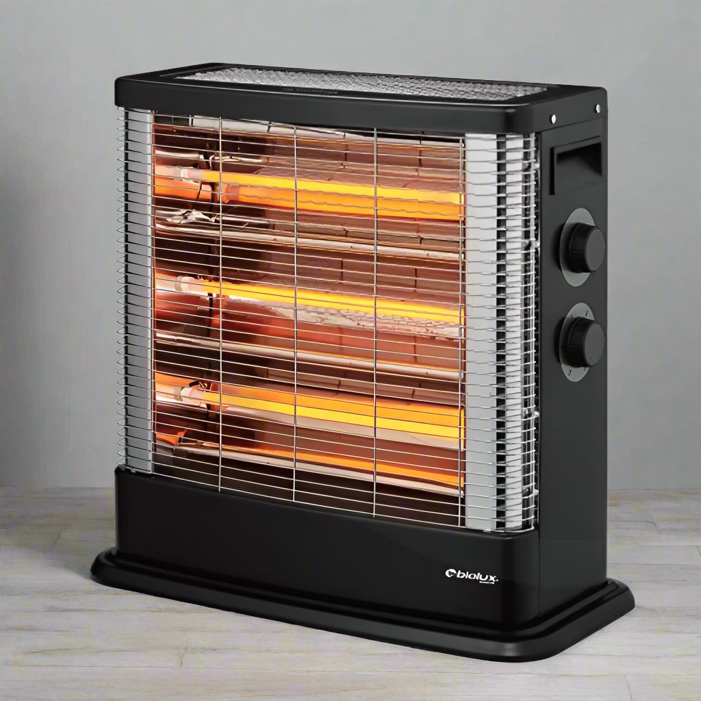 Chauffage Électrique BIOLUX - Fonctionne sur 4 niveaux de puissance différents: 600Watts/1200Watts/1800Watts/2400Watts - Thermostat réglable - 3 Tubes - Faible consommation d'énergie - Sécurité anti-basculement - Facile à déplacer - Dimensions: 46 x 23 x 45 cm - Couleur: Noir - Garantie: 1an