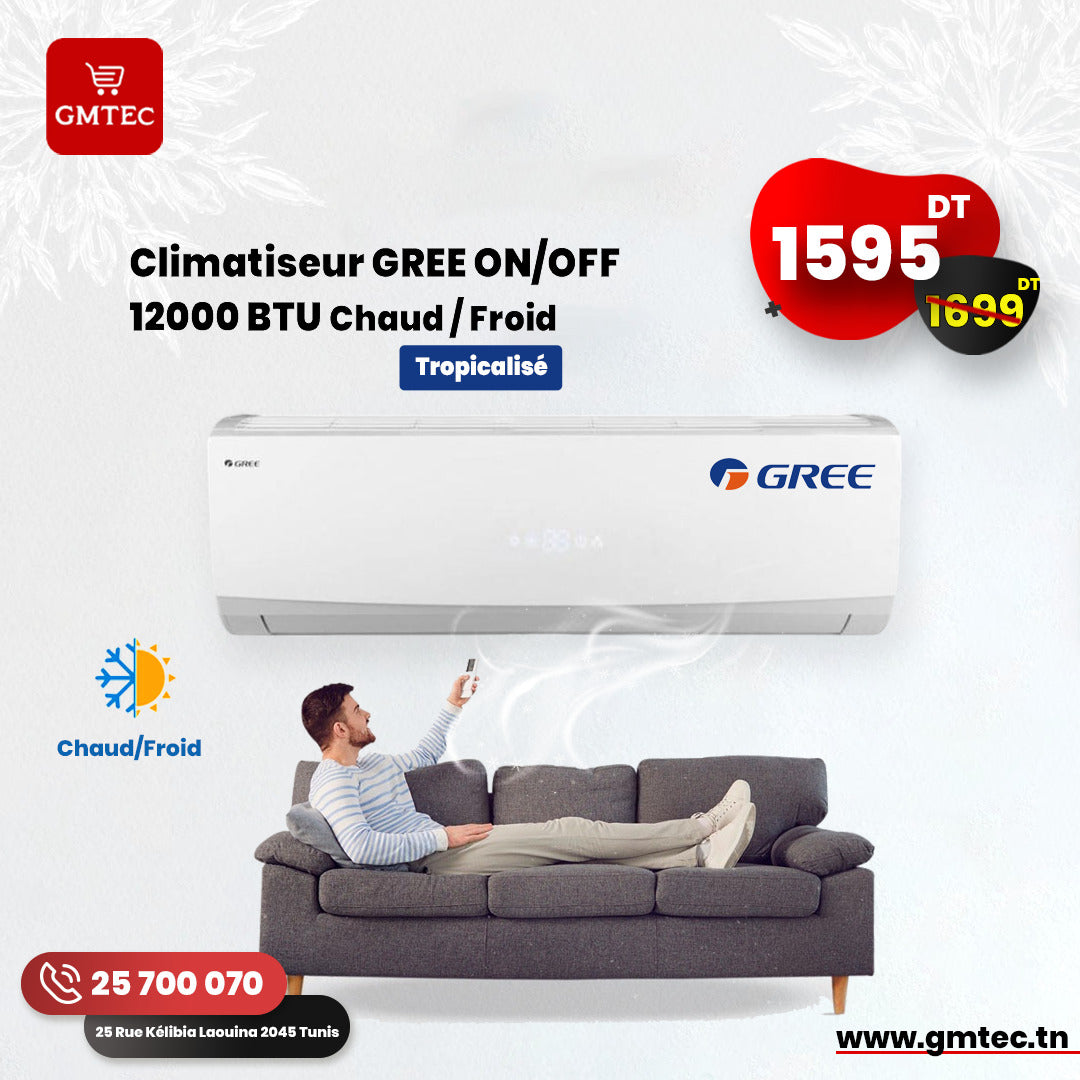 CLIMATISEUR GREE 12000 BTU CHAUD & FROID TROPICALISE