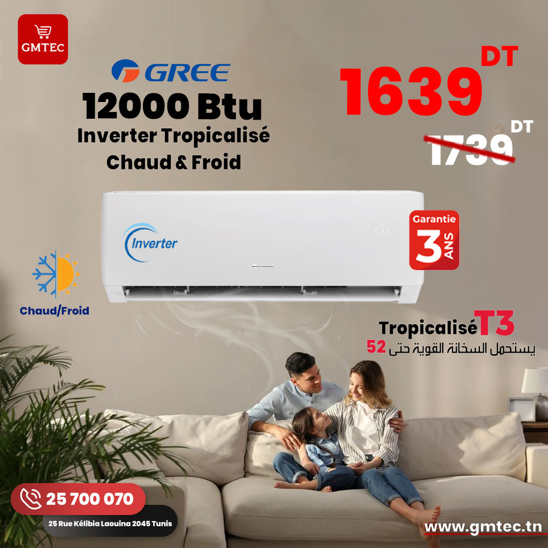 CLIMATISEUR GREE INVERTER 12000 BTU CHAUD ET FROID SMART TROPICALISE