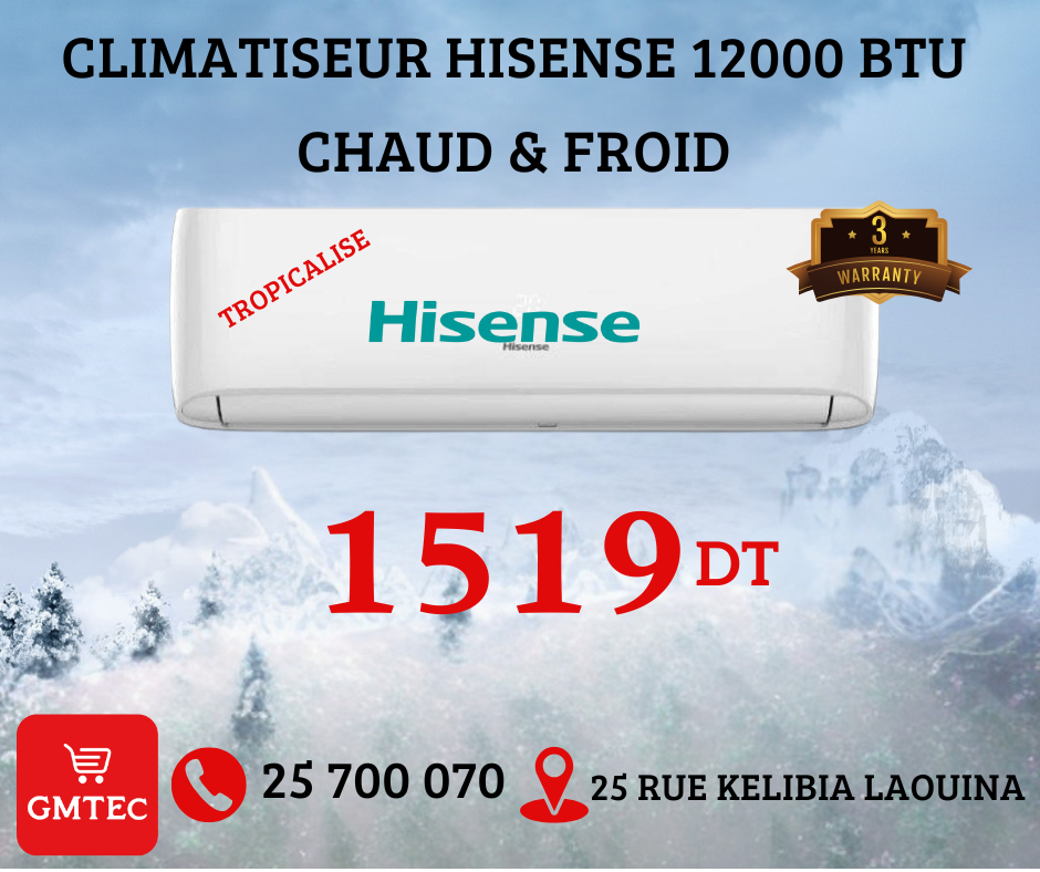 CLIMATISEUR HISENSE 12000 BTU CHAUD & FROID TROPICALISE