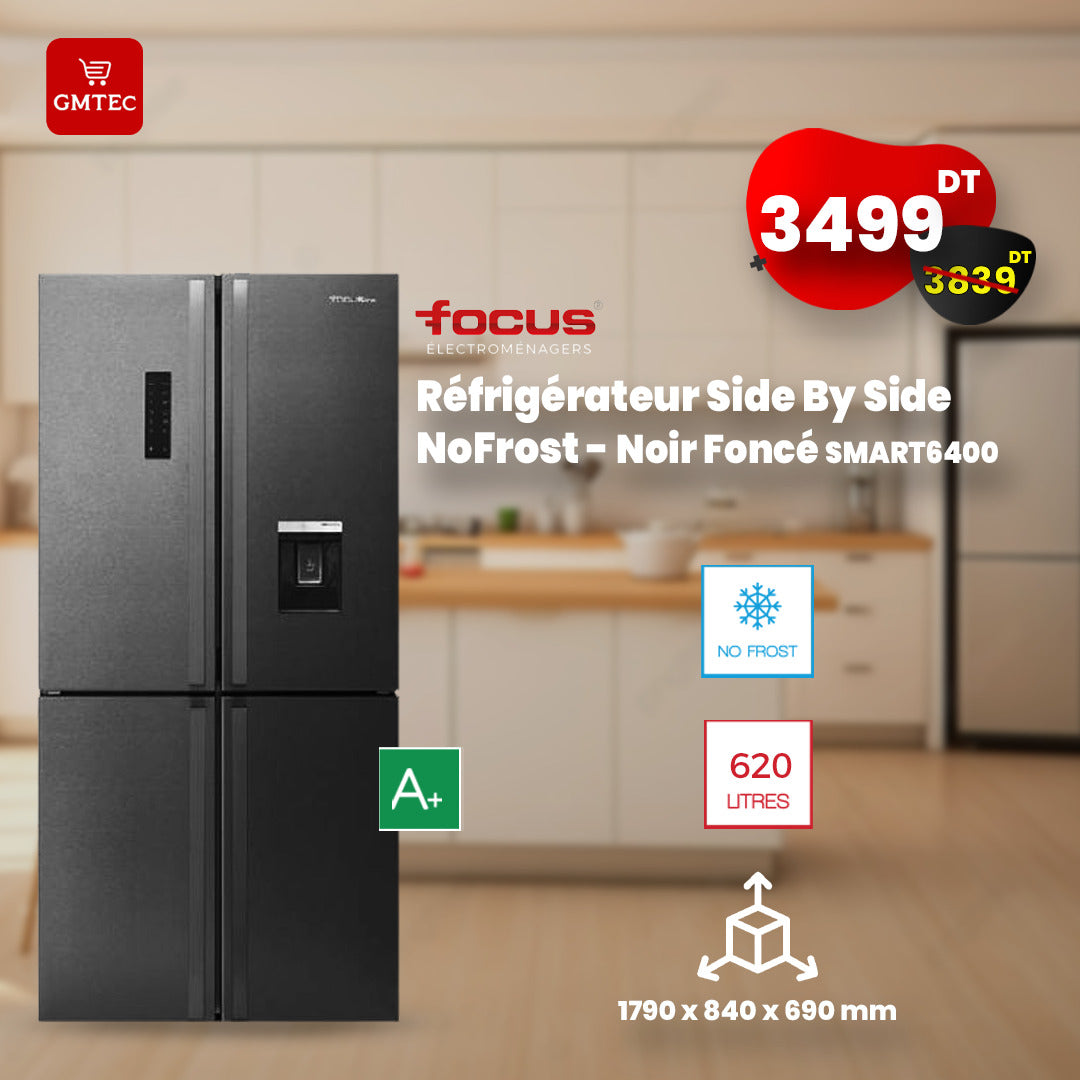REFRIGERATEUR SIDE BY SIDE FOCUS AVEC AFFICHEUR 620 LITRES SMART6400 - DARK INOX