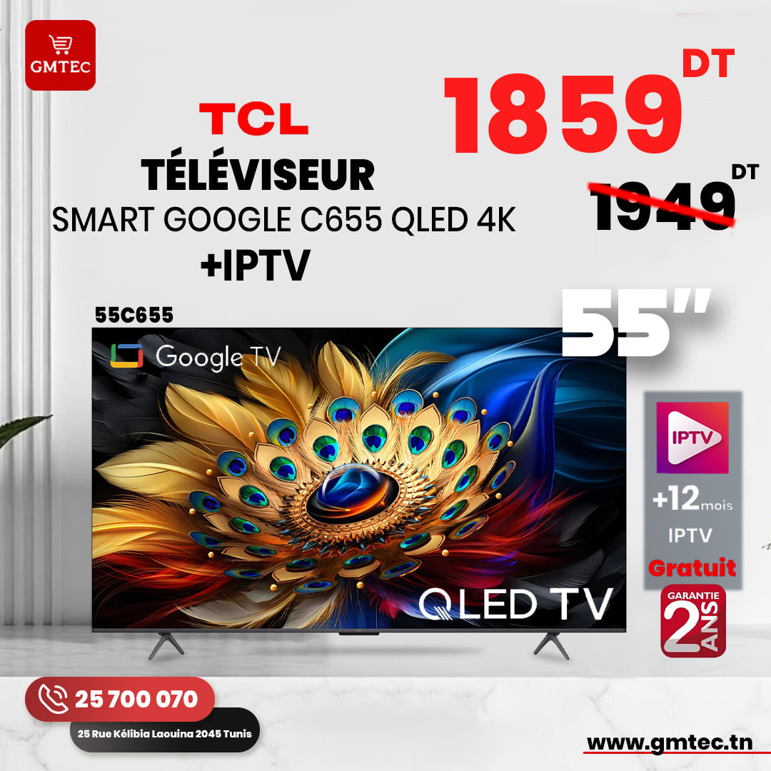 Le téléviseur TCL 55" QLED SMART GOOGLE TV ULTRA HD 55C655 - GARANTIE 2 ANS